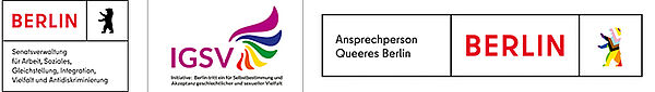 Gefördert durch das Programm „Queeres Leben in den Bezirken“ der Senatsverwaltung für Arbeit, Soziales, Gleichstellung, Integration, Vielfalt und Antidiskriminierung - im Rahmen des Berliner LSBTIQ+ Aktionsplans 2023 der IGSV, unterstützt durch die Ansprechperson der Landesregierung Berlin für die Akzeptanz sexueller und geschlechtlicher Vielfalt: „Ansprechperson Queeres Berlin“